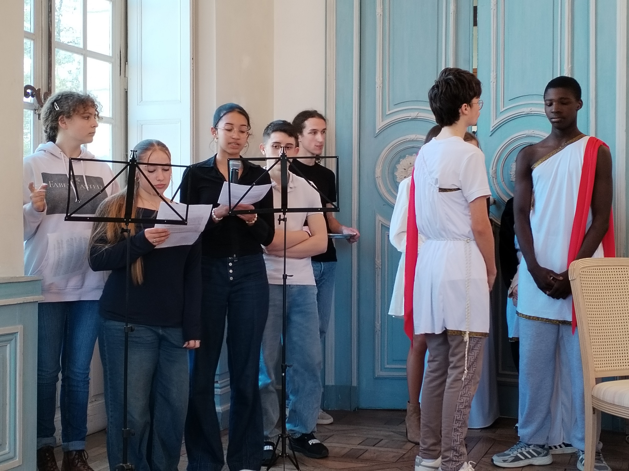 Dans le cadre du festival européen latin-grec, les élèves de seconde latinistes et hellénistes ont participé à la lecture publique d'un roman grec, Daphnis et Chloé.